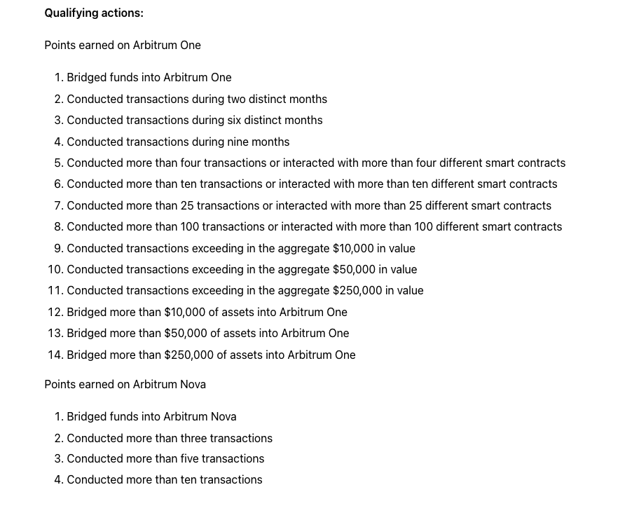 As a case study, let’s dive into the criteria used for Arbitrum’s airdrop: