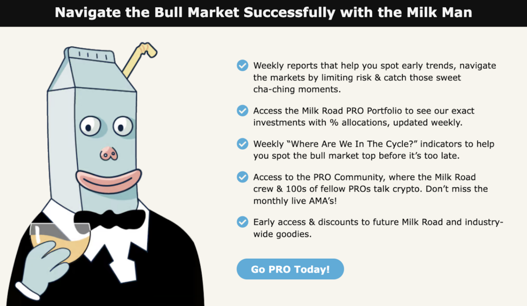 6/ Milk Road PRO subscription (learn how to build wealth with crypto) $25 p/m or $250 per year