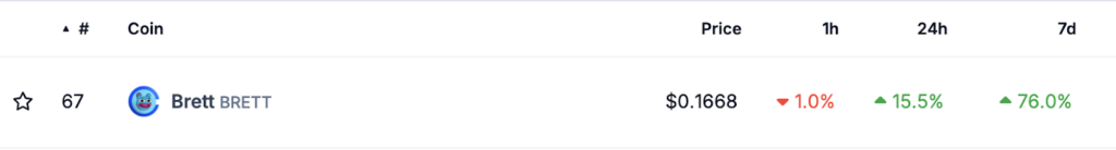 Base doesn’t have its own token, it uses Ether as its currency, so we’ll be comparing $BRETT to $ETH.