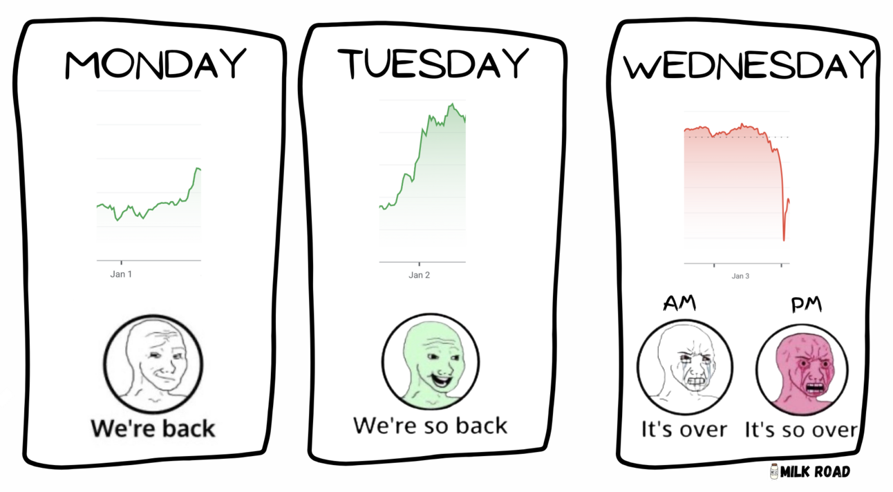 Today’s edition is brought to you by Bakkt® Custody - an institutional-grade solution to custody your digital assets, backed by multi-layered security.Learn how they built their platform with an emphasis on security!GM. This is Milk Road, your daily crypto briefing - with zero filler and extra memes.Here’s what we’re serving up today:2 reasons crypto prices......