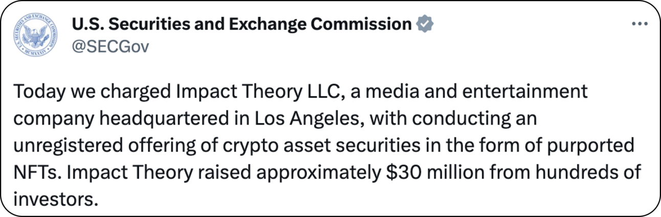 Today’s edition is brought to you by Meridian Grooming - the most innovative trimmer collection, perfect for any style or gender. Unveil your best self! GM. This is Milk Road, where we serve crypto insights with more punch than a left hook from Mike Tyson. Here’s what we got today: The SEC’s first enforcement action......