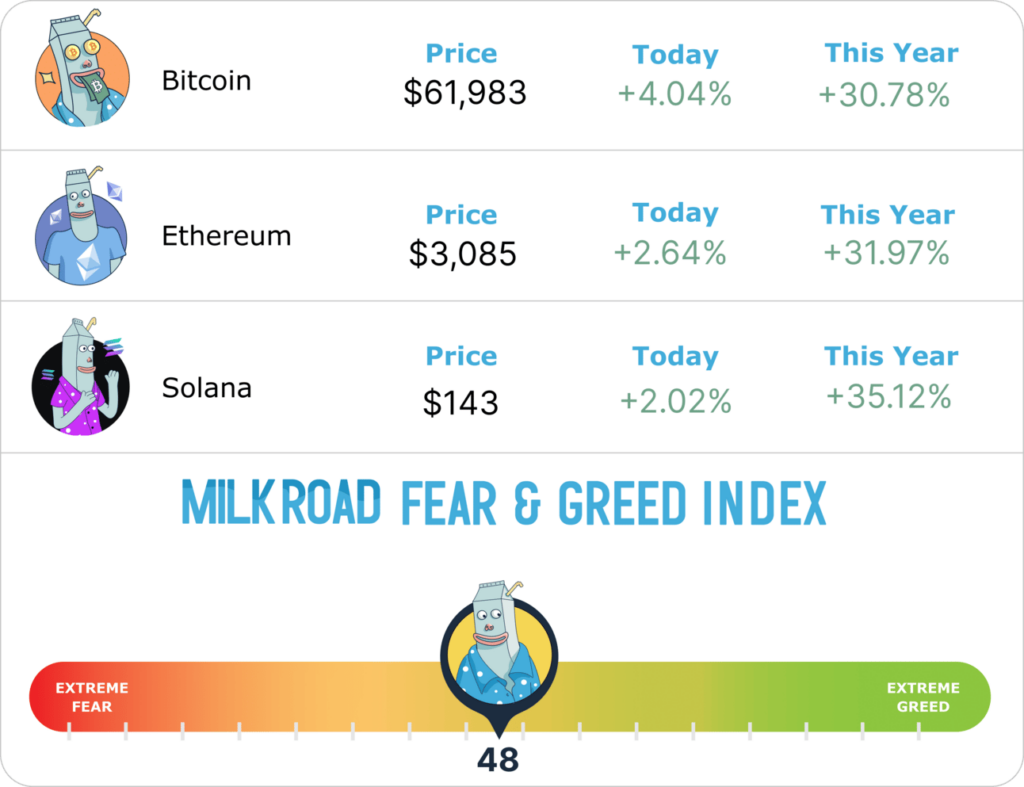 GM. This is Milk Road. It’s Friday, pat yourself on the back for making it through another wild week in crypto.