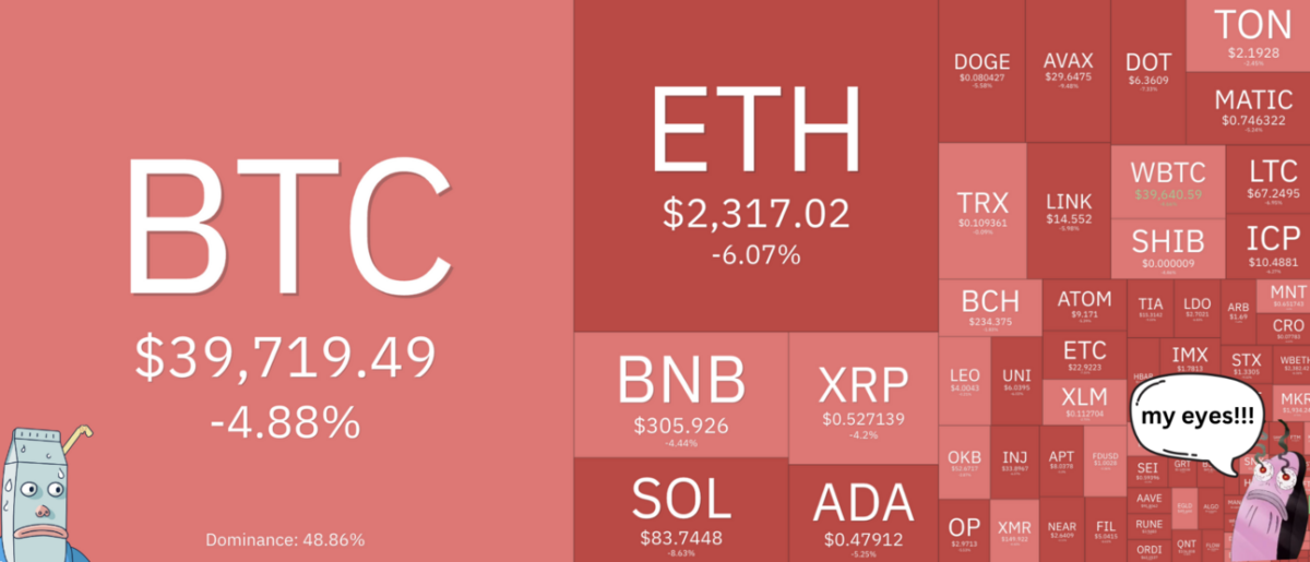 • Many altcoins plummeted by 10% or more.