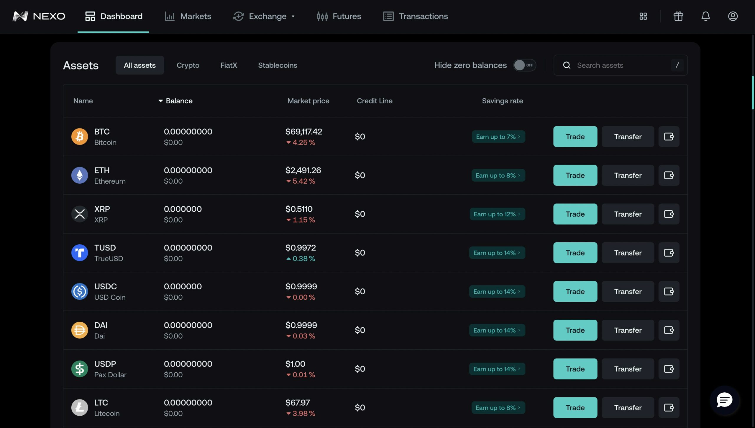 Step 3: Head to the Assets section of your dashboard and select BTC– you’ll see the specific interest rate that Nexo offers.