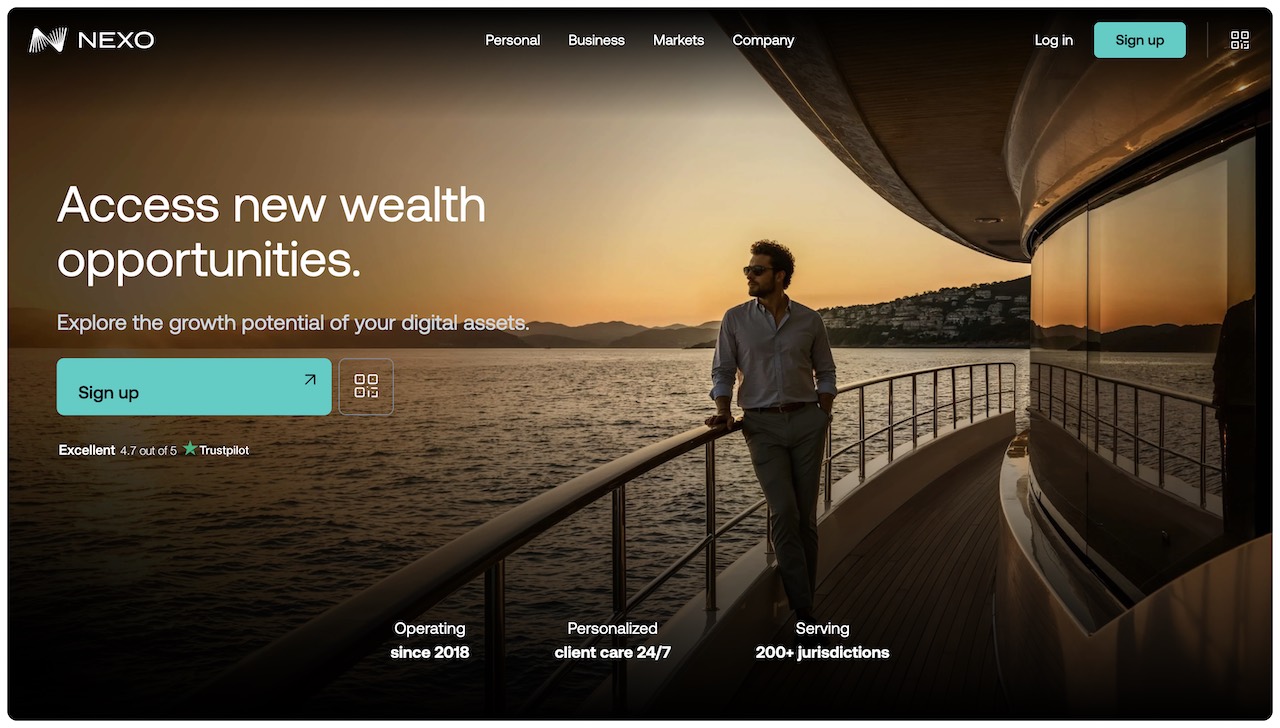 Step 1: Head to https://nexo.com/ and sign in or create an account.