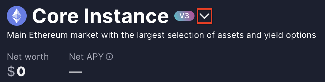 Choose the network you want to lend on. You can do this by clicking on the dropdown next to “Core Instance”.