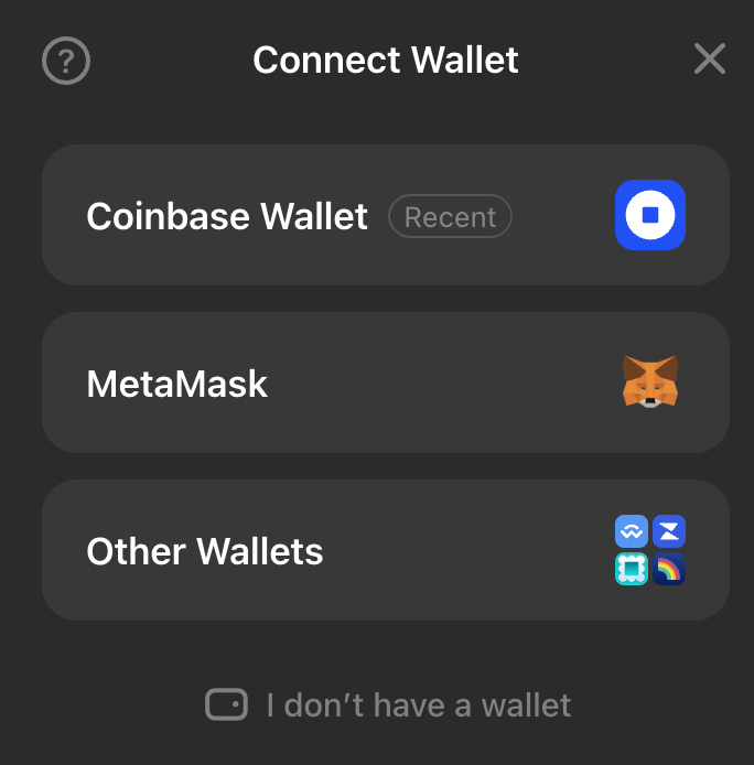 Don’t have a wallet? Select “I don’t have a wallet” to get set up.
