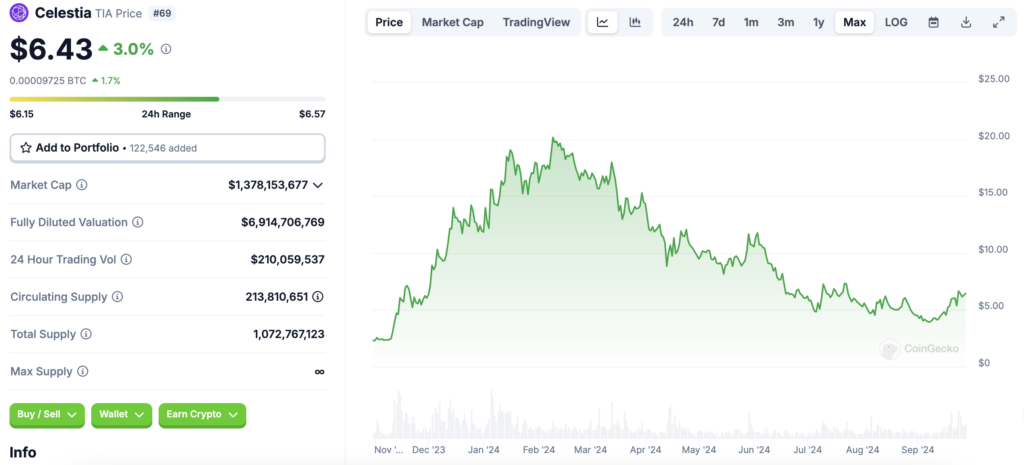 • TIA token performance: It peaked at $20.85 in February 2024, now valued at $6.51.