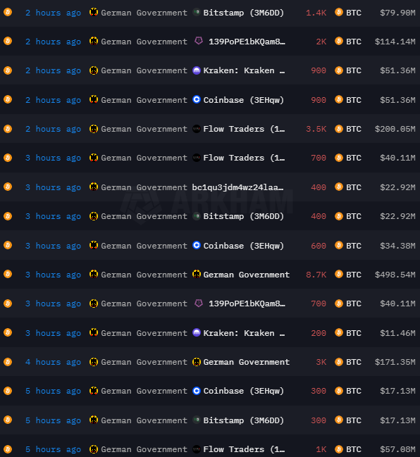 According to data from blockchain analytics firm Arkham, the German government moved the BTC via multiple transactions.