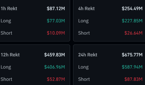 - Crypto liquidations reach $674.59 million in just 24 hours.