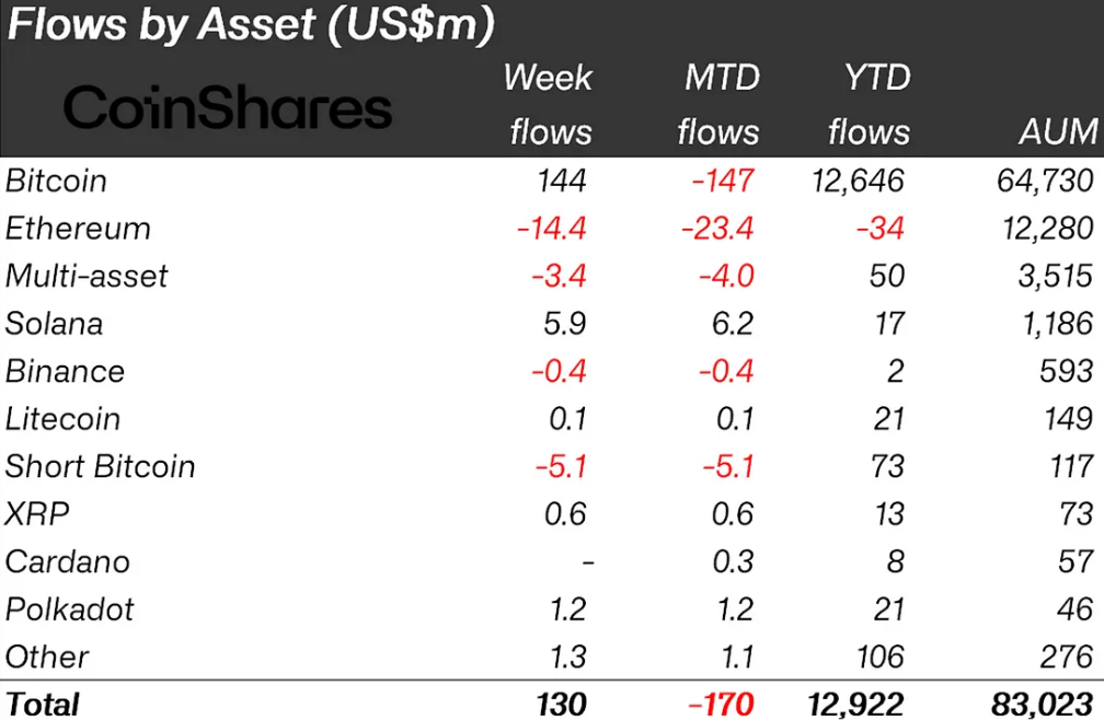 Crypto Funds See $130M Inflows, Ending 5-Week Outflow Streak