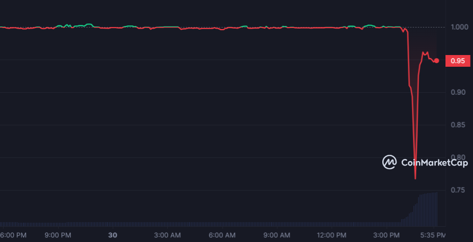 Following the incident, the price of MIM has depegged and plummeted to a low of $0.7638. However, according to the latest data, the price has slightly recovered and is trading at $0.949 at press time.