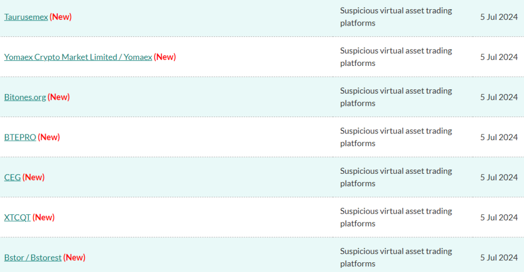 The SFC has now added seven more crypto firms to its list as of July 5. These include Taurusemex, Yomaex Crypto Market Limited / Yomaex, Bitones, BTEPRO, CEG, XTCQT and Bstor.
