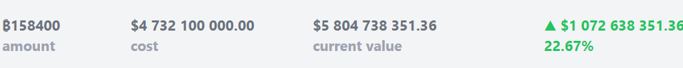 The unrealized gain equals a hefty 22.67% return on the company’s aggregate BTC acquisitions to date.