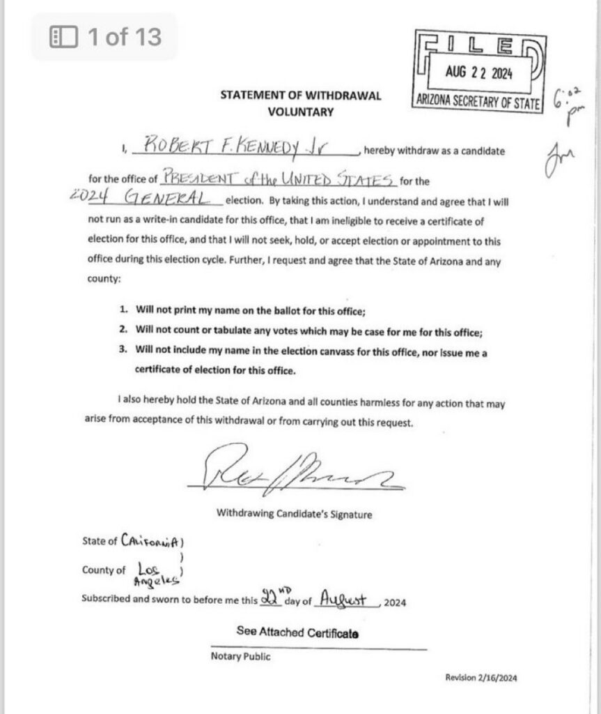 - RFK Jr. bows out: Kennedy drops out of the race right before a big Arizona speech.