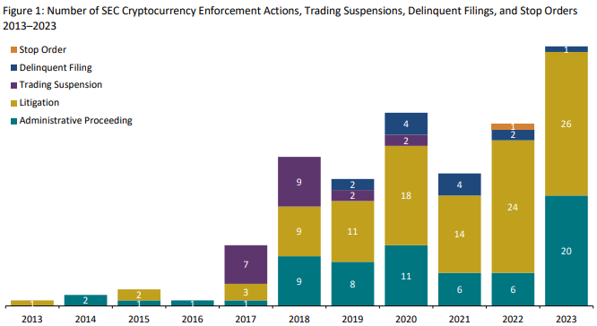SEC Crypto Enforcement Jumped 53% to 46 Actions in 2023
