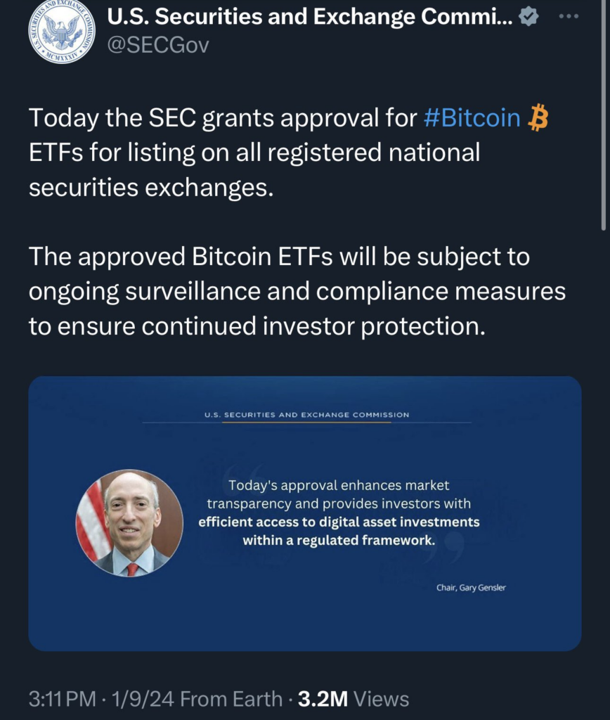 The U.S. SEC’s official X account falsely announced approval for listing a spot bitcoin exchange-traded fund (ETF), igniting brief euphoria. However, the tweet emerged as a fake announcement once officials declared the social media account was hacked.
