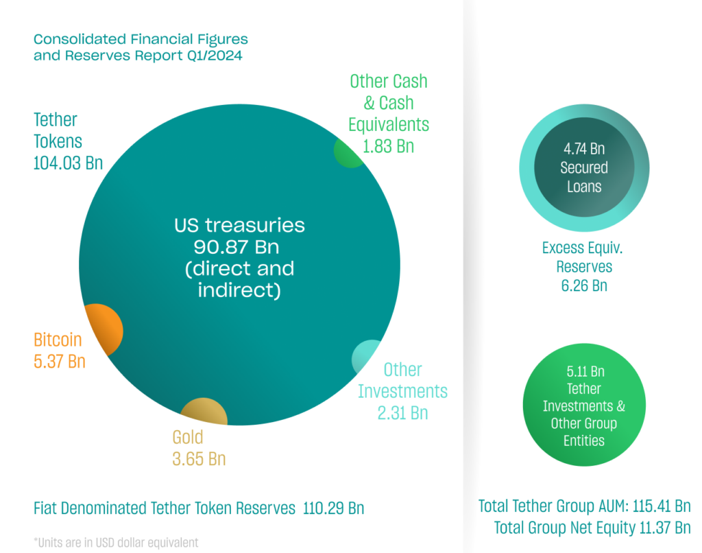 The Reserves Report section of the new report reiterates Tether’s strong financial position, with the value of assets composing the Reserves exceeding the value of liabilities by $6,261,866,717 as of March 31, 2024.