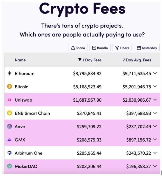 The site is very straightforward and helps give people a sense of which chains and protocols are actually generating revenue. Even though fundamentals and metrics are treated much differently in crypto, it is important to have a pulse on which projects have potential to be profitable businesses.