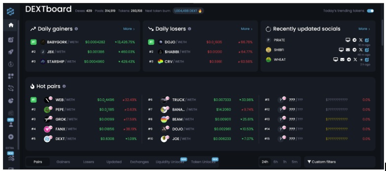 First off, DexTools allows you to view the charts and important information on any token on the blockchain. Even if a token only launched a minute ago, you can view its information and price action here. Additionally, it provides you with details on all trades, public sentiment, and also helps you find new, trending tokens.