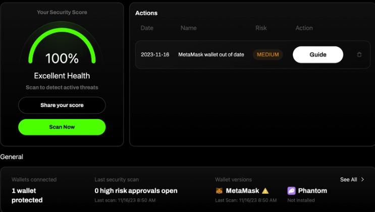 1/ They offer a clean dashboard where you can view your wallet’s “health” and ensure that your wallet is not connected to any malicious sites or other risks.