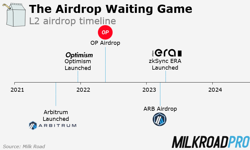All signs point to zkSync’s airdrop timeline being more similar to Arbitrum’s rather than Optimism’s timeline.