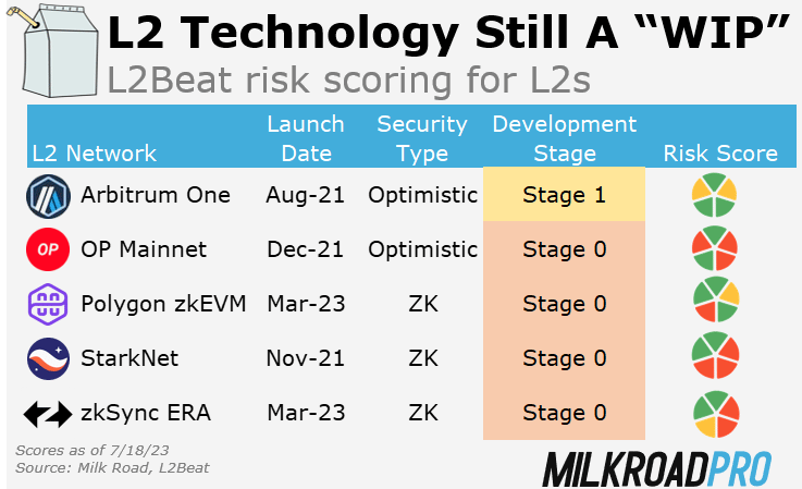 Debate over which approach is the most secure, scalable, and user-friendly has been heated. Given the complexity and early development stages of these L2s, it will continue raging on. And crowning a “winner” before we see both of them operate at scale and in production for a while seems premature. So, here’s what’s top of mind for the Milk Man: