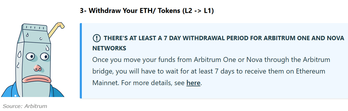 The process is especially painful when it comes to getting funds off optimistic rollup L2s and back to Ethereum. If you’re using a canonical bridge (the most secure option), it would take you ~7 days to get your money off an optimistic rollup. That’s an eternity in crypto.