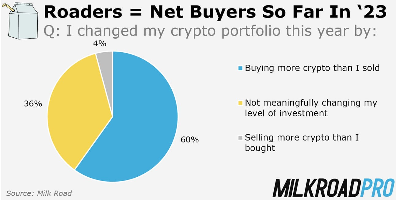 We’ve all heard the saying: “Be greedy when others are fearful, and fearful when others are greedy”. Most Roaders took action on that advice in H1. Over half of them (60%) stacked more crypto.
