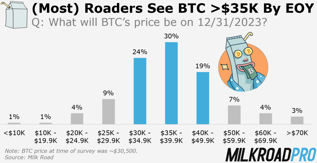 - Most Roaders (72%) think BTC will finish the year between $30K and $50K.
