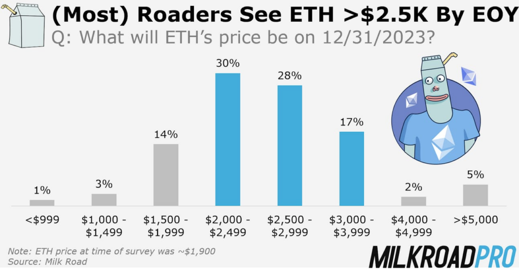 - Most (75%) see ETH finishing the year between $2.5K and $4K.