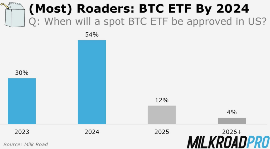 - The most common “BTC ETF ETA” among Roaders is sometime in 2024.