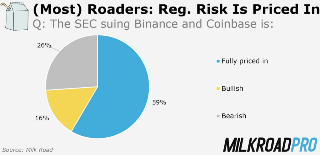In case you forgot, the SEC is still suing two of the largest crypto exchanges: Coinbaseand Binance. When the news broke, altcoins in general took a beating. But most Roaders feel the worst is over: