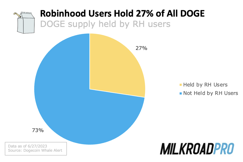 - Robinhood’s users are holding over 27% of the circulating supply of DOGE, which makes up over ¼ of their total crypto holdings