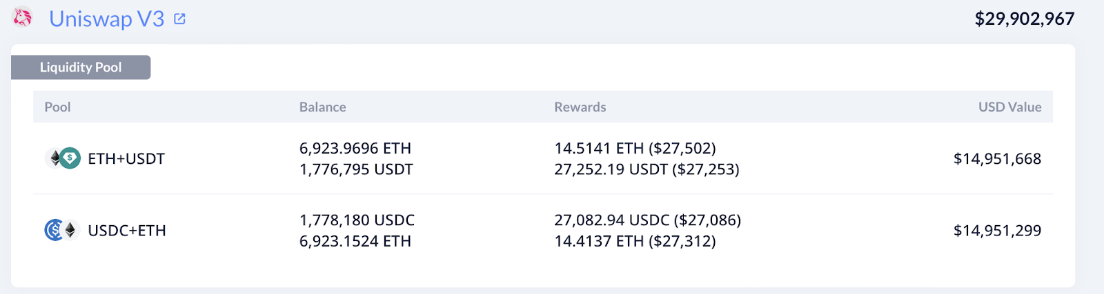 Their other major holding is ETH, making up ~33% of their portfolio – almost all of which is used to provide liquidity on Uniswap and earn trading fees: