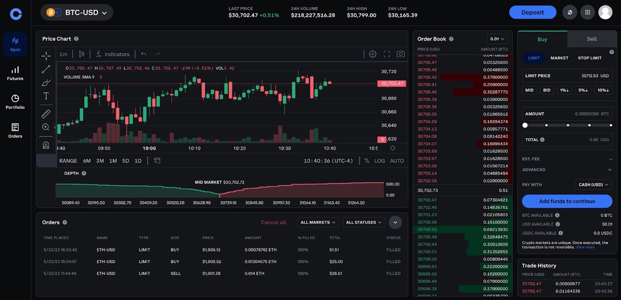 Advanced trading brings the features you’d expect, like limit orders and stop-limit orders. And if you live in a supported market (not the US), you’ll have access to futures trading. Coinbase also recently introduced Coinbase International for institutional traders in select jurisdictions.