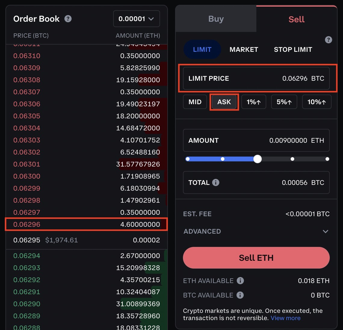 The fees for buying crypto with the standard interface are higher, so you’ll want to use the Advanced Trading platform. If you think you might need a hand, Coinbase offers tutorial links on the Advanced Trade screen.