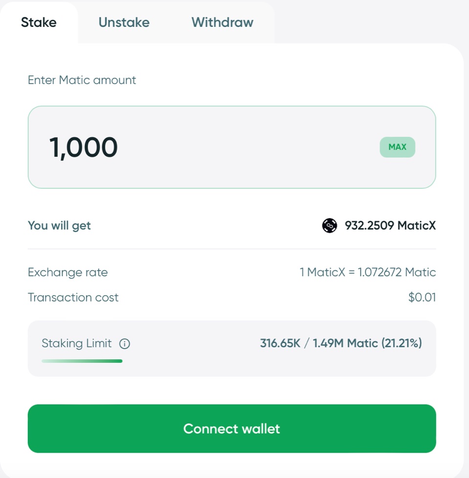 For example, here’s what’s available now for Polygon MATIC (MATICx) staking.